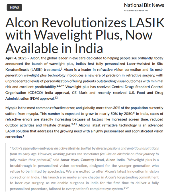 Wavikar Eye Institute brings the Future of Personalised LASIK, first time in India : Wavelight Plus.