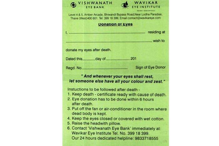 One out of every 5 persons in India is blind due to corneal diseases. The cornea is the clear tissue in front of the eye similar to a watch glass. If the cornea becomes cloudy from diseases, injury, infection, or poor nutrition, vision is dramatically reduced or lost. Such patients can recover their vision if the defective cornea is replaced with the good human cornea. The human cornea can only be produced through eye donation after their death. It is distressing that almost 25 lakh of our countrymen, women, children are waiting for somebody to donate the eyes at Eye Bank in Mumbai